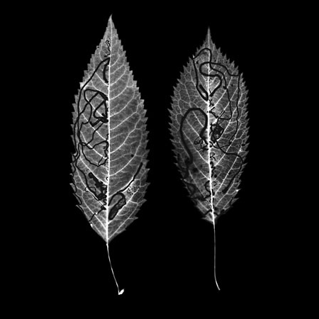 Cherry leaf miner photogram © Sarah Wainwright